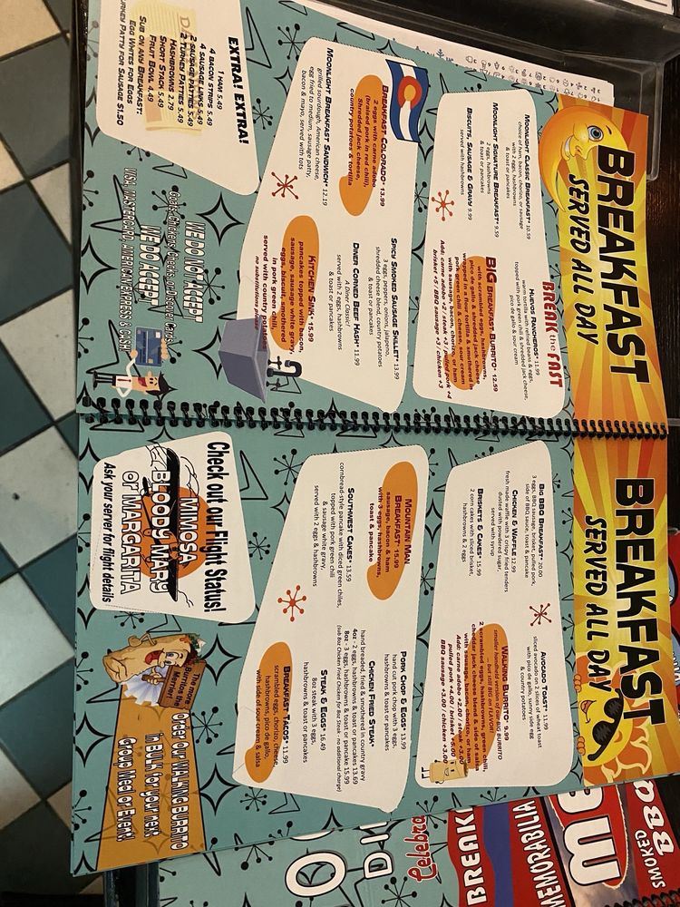 Welcome to Moonlight Diner, a hidden gem in Denver offering classic American diner fare with a retro 1950s vibe. Located just minutes from the airport, this diner has been a local favorite for 25 years. The diner is wheelchair accessible, offers free Wi-Fi, and has a full bar serving up fun drinks like Mimosa and Bloody Mary Flights.
