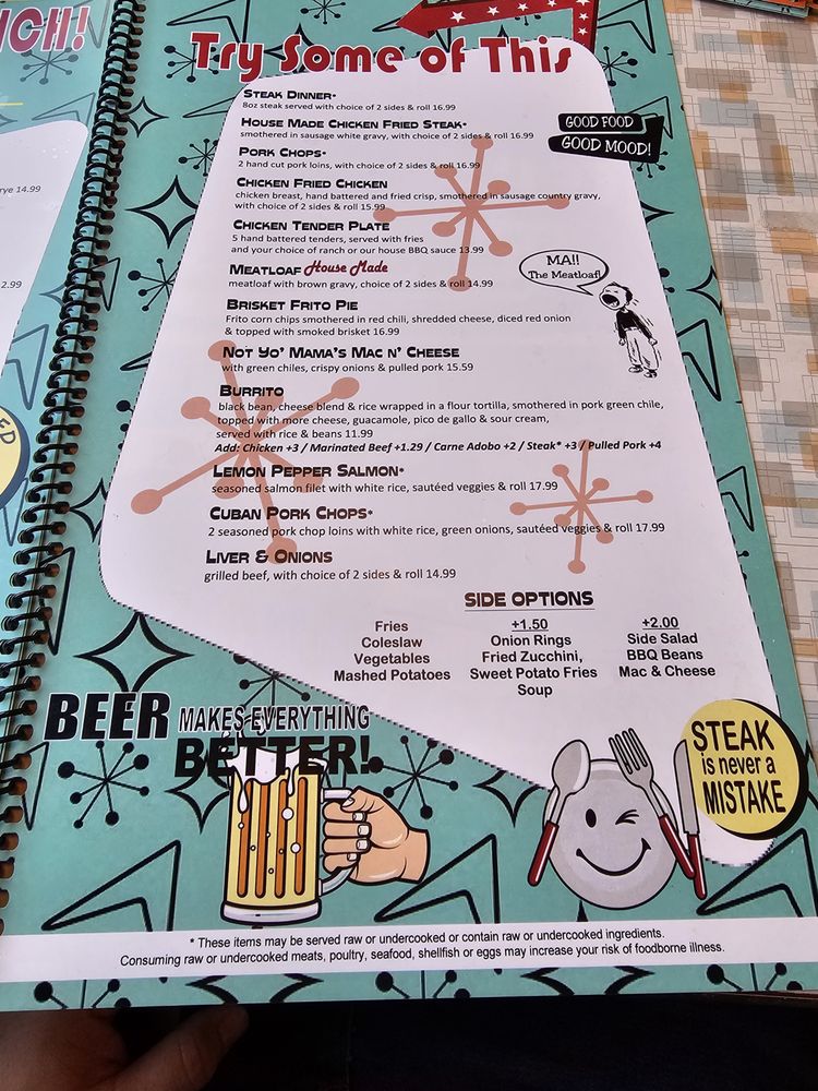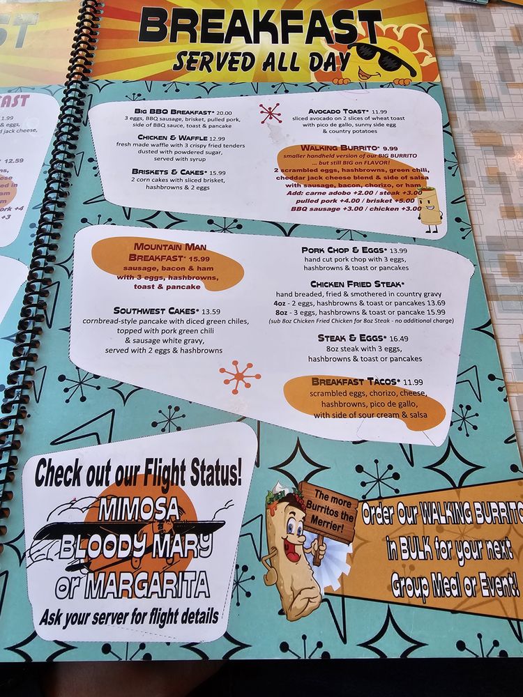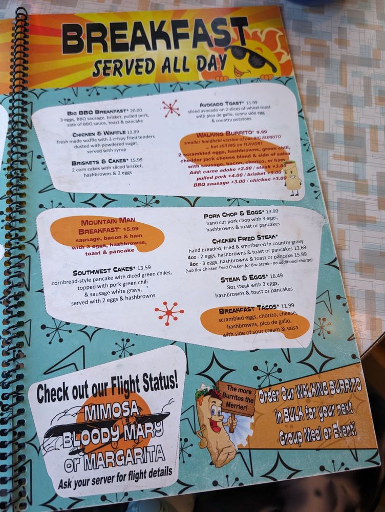 The menu boasts huge portions and a variety of options for breakfast, lunch, and dinner. From Jr Pancakes for breakfast to Chicken tenders for lunch and Grilled Cheese Sandwich for dinner, there is something for everyone. The Breakfast Burrito topped with green chili is a must-try according to customer reviews.